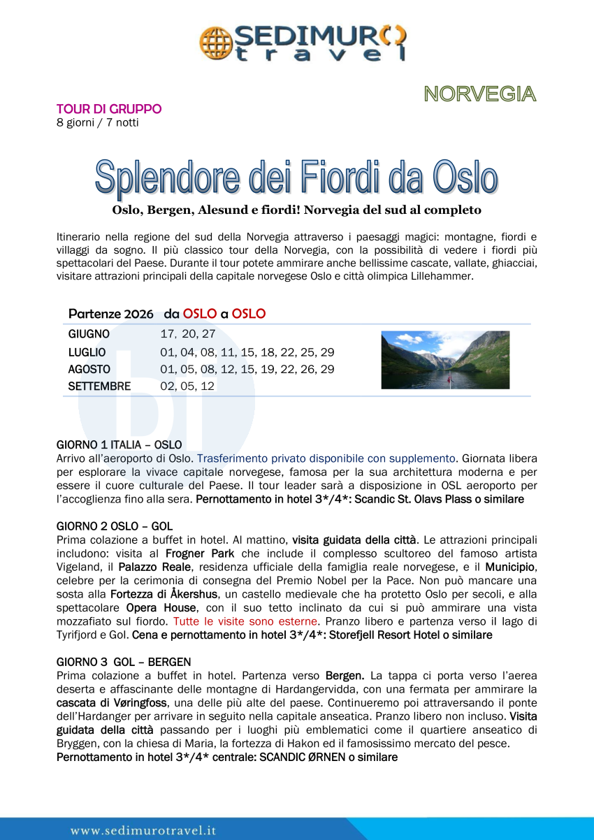 Splendore dei Fiordi da Oslo 8 giorni