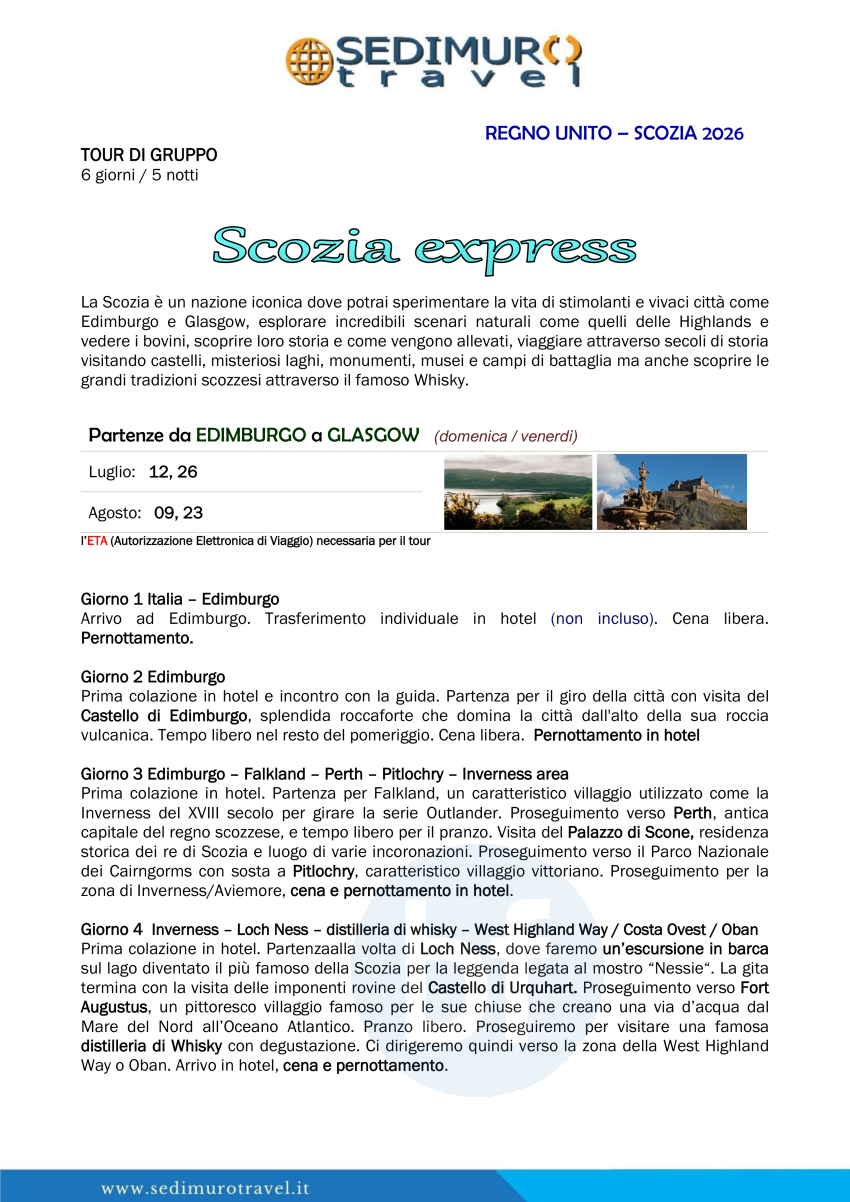 Scozia express da Edimburgo a Glasgow 6 giorni